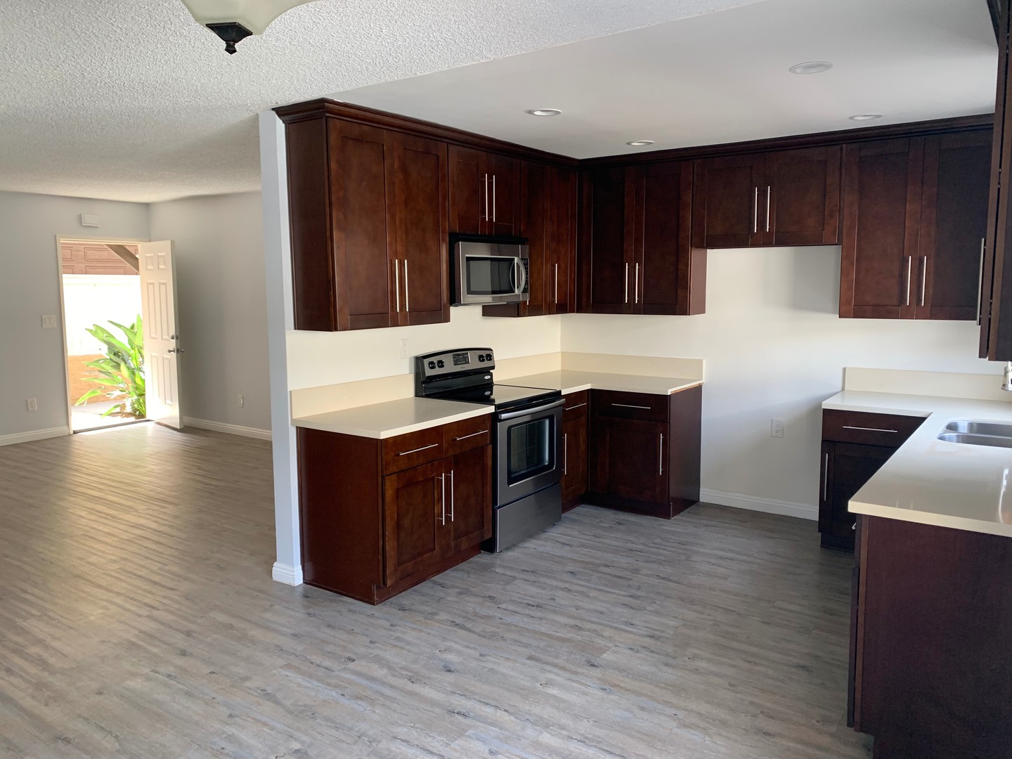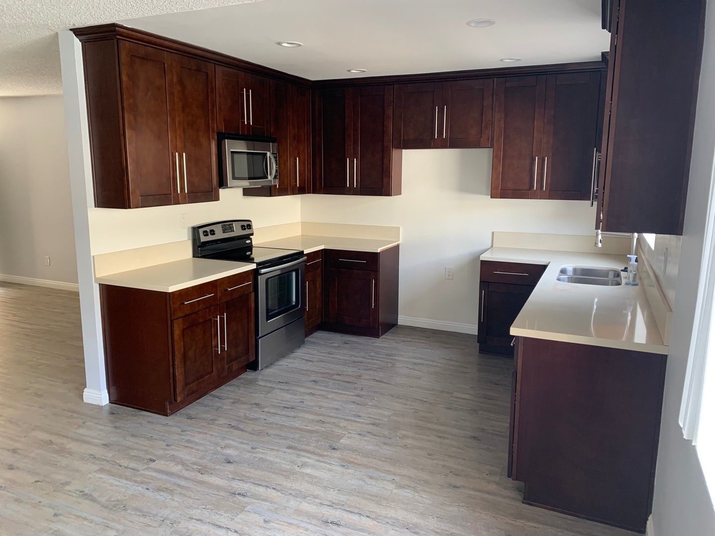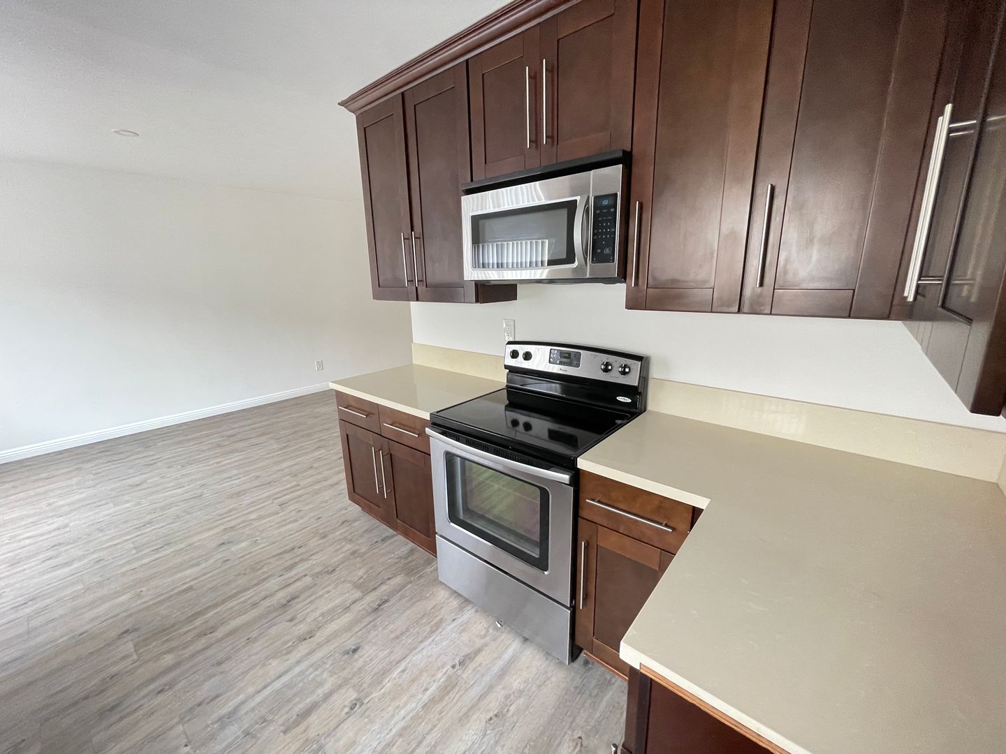 Spacious Apartment including newly remodeled Cabinetry, Quartz Counter Tops, Custom Tiled Shower, Laminate Wood and Travertine Floors, New Stainless Steel Appliances, Brushed Nickel Faucets and More