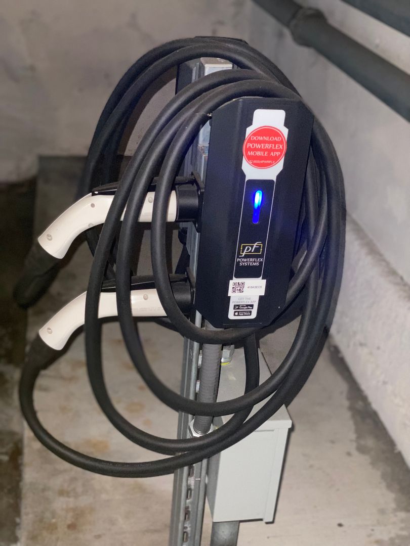 Electric Vehicle Charging Stations Available In Most Parking Spaces.